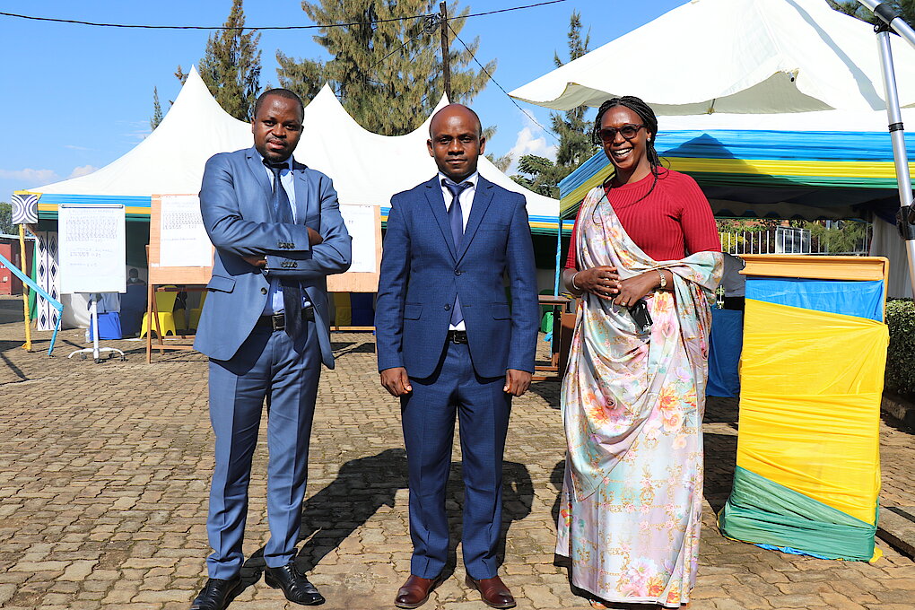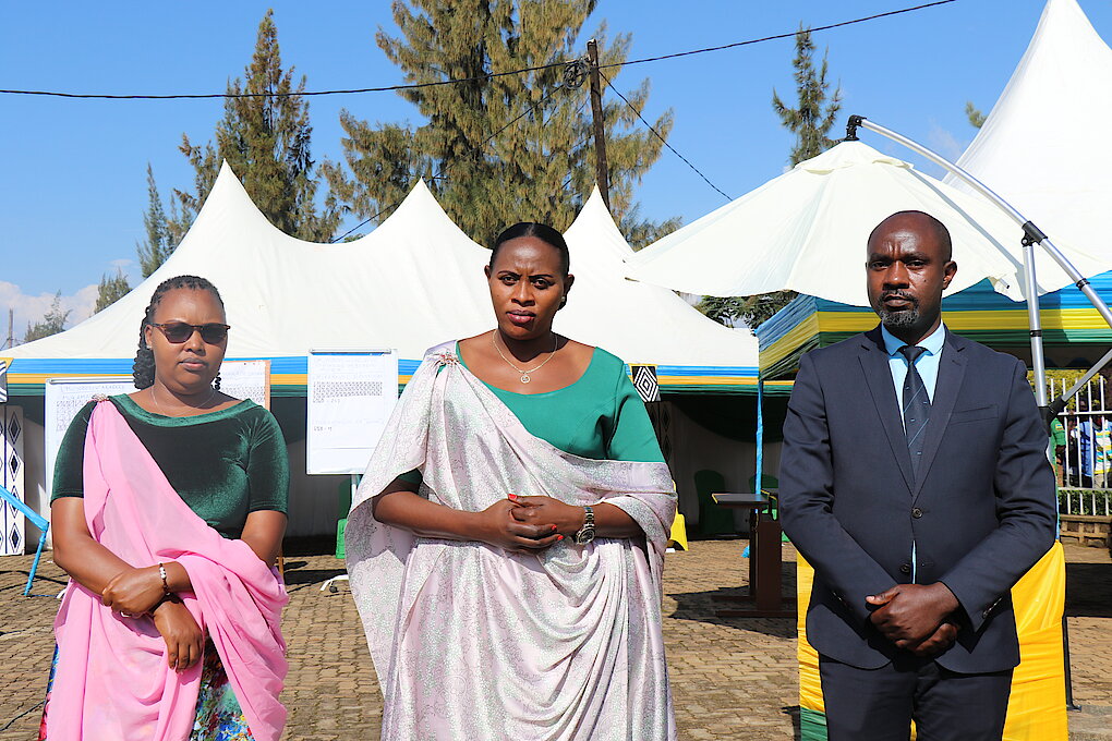 Uhereye Ibumoso: MUKANKUSI Athanasie:Umuyobozi w’ Akarere Wungirije Ushinzwe Imibereho Myiza, MUKAMASABO Appolonie: Umuyobozi w’ Akarere, MUHAYEYEZU Joseph Desiré: Umuyobozi w’ Akarere Wungirije Ushinzwe Iterambere ry' Ubukungu