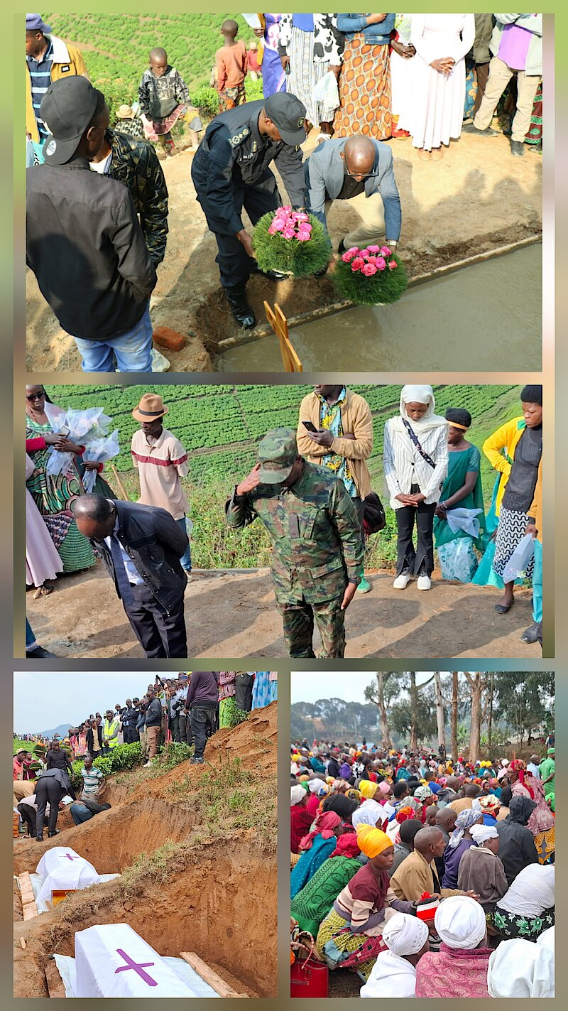 Guverineri w'intara y'Iburengerazuba n'abandi bayobozi bifatanyije n’abaturage hashyingurwa abaturage 8 baguye mu mpanuka ya Nyirahindwe I
