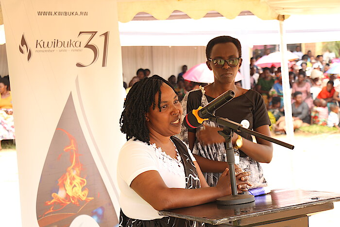 Hon. Senateri Nyinawamwiza Laetitia yahumurije abaturage b'umurenge wa Gihombo cyane cyane abacitse ku icumu n'abafite ababo baruhukiye mu rwibutso rwa jenoside rw'icyahoze ari Rwamatamu by'umwihariko, ababwira ko jenoside itazongera ukundi kubera ubuyobozi bwiza bureberera abanyarwanda bose.