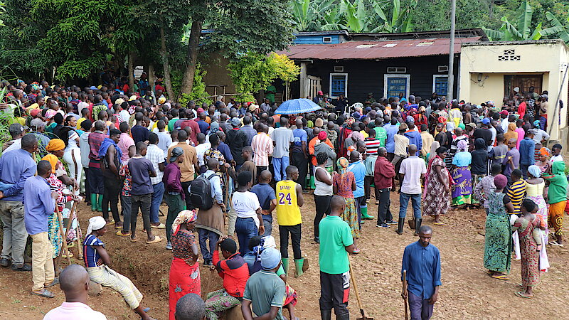 "Ubwitabire bwanyu butuma umuntu ahora yifuza gukorana umuganda namwe": Meya Mupenzi Narcisse ubwo yaganiraga n'abaturage b'akagari ka Ntendezi nyuma y'umuganda