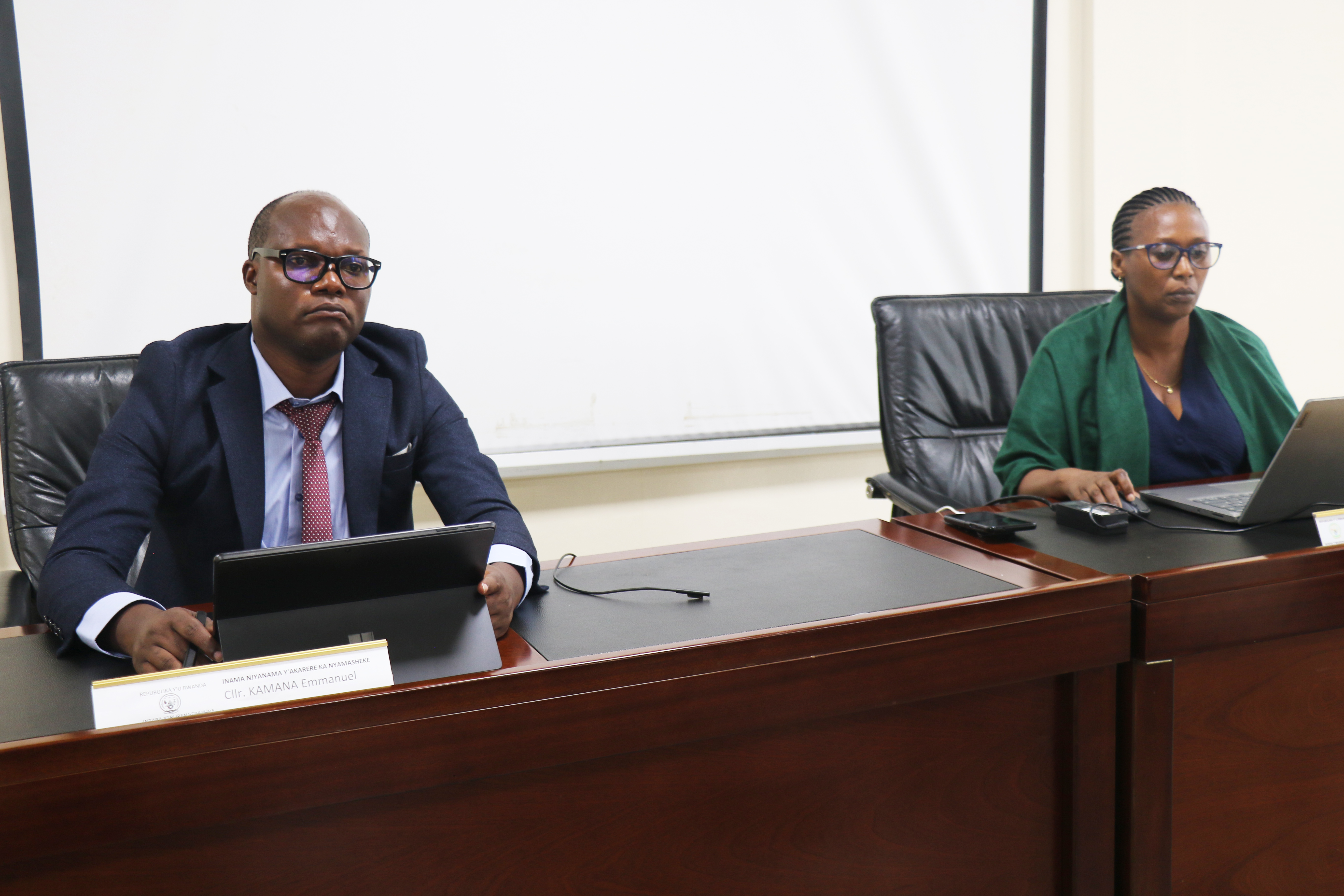 Perezida wa njyanama Pro. Kamana Emmanuel n'umunyamabanga wa njyanama Madamu UZARAMA Fausta