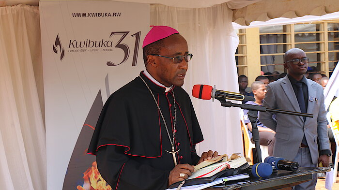 Nyiricyubahiro Mgr Edouard Sinayobye asenga mu gikorwa cyo Kwibuka31 i Shangi