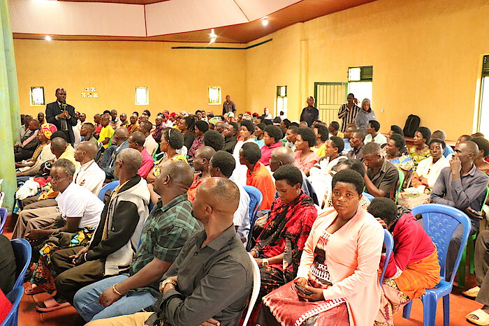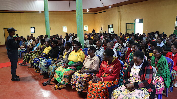 Mu biganiro yagiranye n’abaturage byibanze ku muryango uzira amakimbirane kandi ubasha kwiteza imbere, yasobanuriye abaturage ibyiza by’umuryango ubanye neza, bungurana ibitekerezo ku gisobanuro cy’amakimbirane n’uko yakwirindwa.